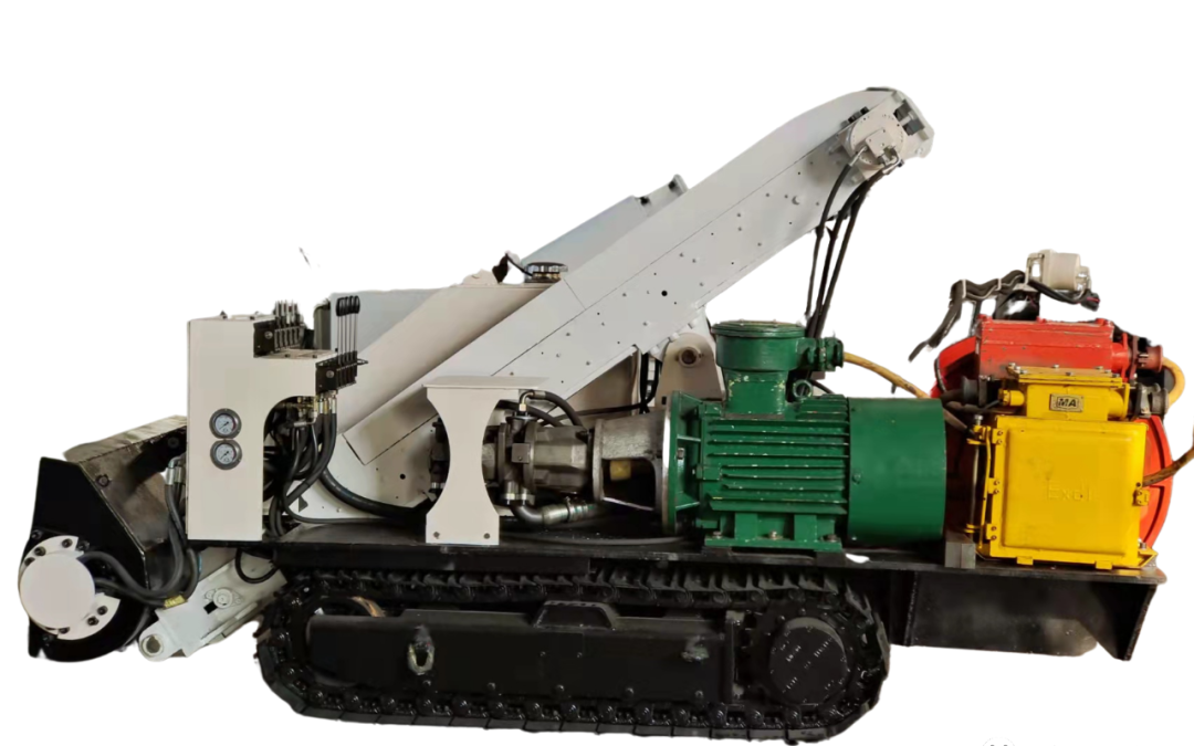 螺旋收集部采用液壓馬達驅動(dòng),安全可靠,裝載效率高;機體方便拆卸、運輸、穩定性高;履帶行走,機動(dòng)靈活,爬行能力強;轉載部可向左、右各90°旋轉,實(shí)現落煤點(diǎn)無(wú)死角;冷卻方式采用風(fēng)冷,這種風(fēng)冷方式結構簡(jiǎn)單、體積小、重量輕、熱阻小、換熱面積大、 使用安裝方便、它的散熱效果較高。